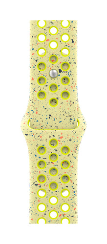 Made with compression-molded perforations for breathability, the Nike Sport Band is durable and strong, yet surprisingly soft. It features colorful flakes that create a randomized pattern, making each band unique. The smooth, dense material drapes elegantly across your wrist and feels comfortable next to your skin. An aluminum pin-and-tuck closure — carefully etched with the Run Swoosh logo — gives the pin a fresh matte finish.Specifications