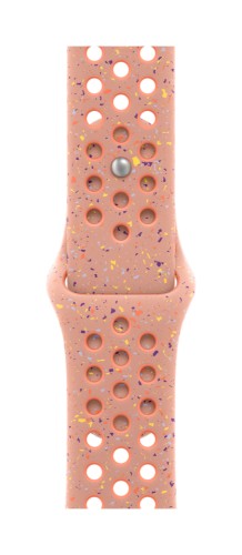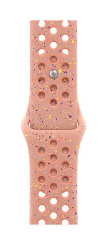Made with compression-molded perforations for breathability, the Nike Sport Band is durable and strong, yet surprisingly soft. It features colorful flakes that create a randomized pattern, making each band unique. The smooth, dense material drapes elegantly across your wrist and feels comfortable next to your skin. An aluminum pin-and-tuck closure — carefully etched with the Run Swoosh logo — gives the pin a fresh matte finish.Specifications
