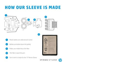 Hi, I'm made of plastic bottlesThis 14-inch diagonal laptop sleeve is made out of discarded plastic bottles. These bottles are ground into pellets which are spun into yarn and knit into the beautiful sleeve you see in front of you. Reducing the plastics in nature and upping your sleek style.