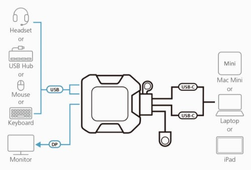 - One KVM switch allows for easy control and fast switch between two USB-C devices from a single set of keyboard, mouse, and monitor