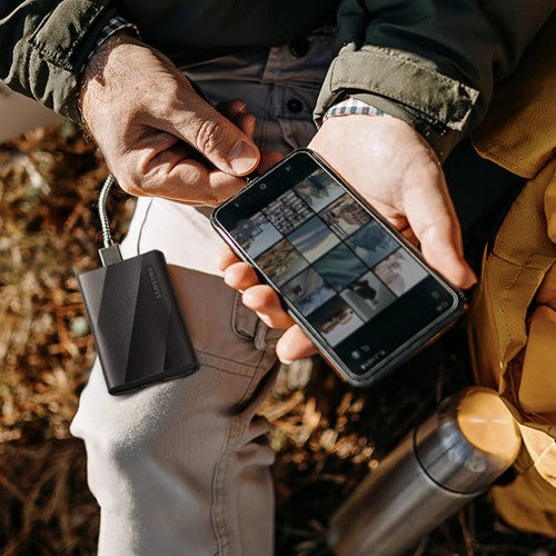 Available in spacious 1TB, 2TB and 4TB models, the T9 maintains its compact form and lightweight build at just 122g. With its dotted, non-slip finish, you can securely hold your data in the palm of your hand with a comfortable grip.