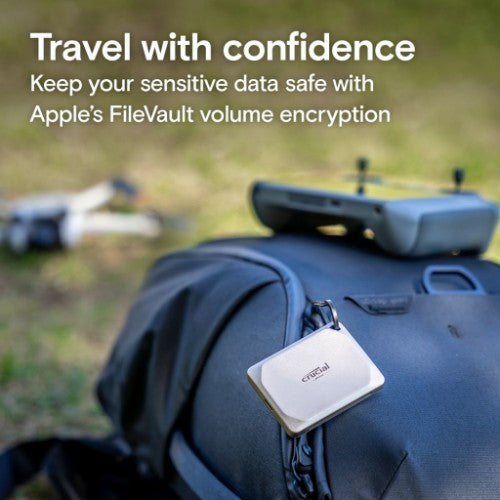 Crucial X9 Pro for Mac Portable SSDDesigned for Mac and optimized to work with Apple devices right out of the box, the Crucial X9 Pro for Mac helps you supercharge your creativity. With space to store thousands of photos, files, and videos and the speed to edit and retouch your media quickly, the Crucial X9 Pro for Mac gives you the capacity to tackle even taxing workloads along with durability and style in the studio, in the field, or wherever you roam.