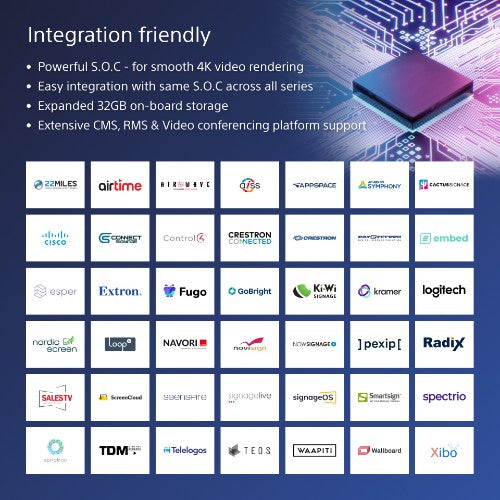 In-built support for HTML5 lets you use BRAVIA to display interactive signage content without needing a dedicated set-top box, media player or PC. On-screen content can be freely laid out using 4K video, still images or even with the HDMI input.