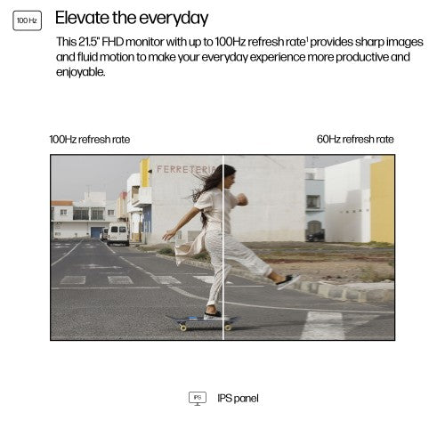 - This 21.5" FHD monitor with up to 100 Hz refresh rate[1] provides sharp images and fluid motion to make your everyday experience more productive and enjoyable.