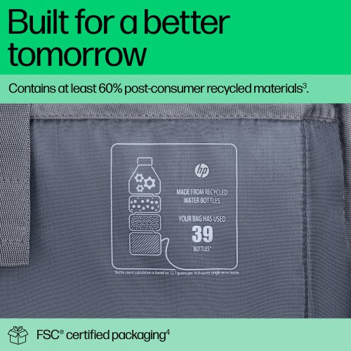 - The better choice for a brighter tomorrow, the HP Travel Plus 15L 14-inch Laptop Bag is made with at least 60% post-consumer recycled materials (39 plastic bottles).[4] Plus, it comes with FSC-certified packaging.[5]