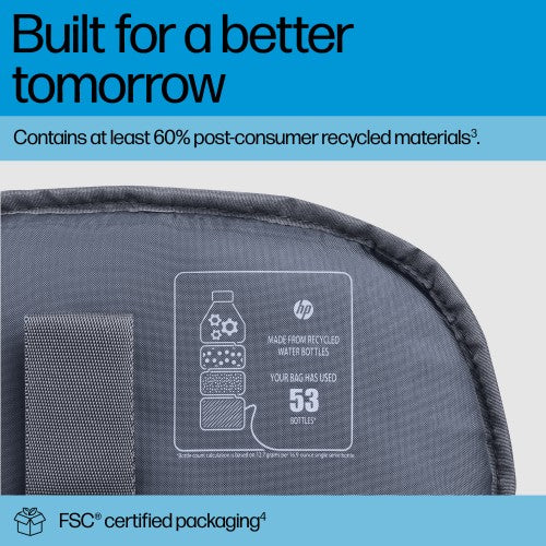 - The better choice for a brighter tomorrow, the HP Travel Plus 30L 17-inch Laptop Backpack is made with at least 60% post-consumer recycled materials (53 plastic bottles).[4] Plus, it comes with FSC-certified packaging.[5]