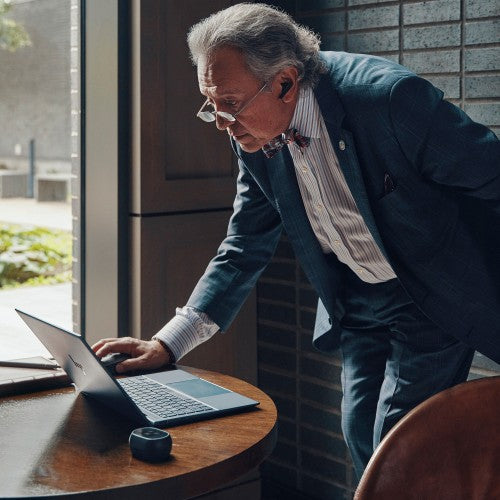 Each bud has a three-mic array that triangulates on your voice and minimizes surrounding noise so you’re always loud and clear. Whether you are in a video meeting or a call, these wireless earbuds are designed to keep you productive and connected.Status and audio controls at your fingertips