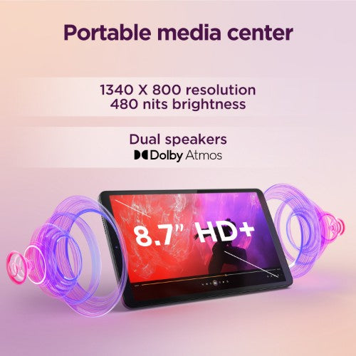 Enjoy portability and style with this lightweight (about 320g) 8.7″ tablet. Compact enough to slip into your bag or pocket, it’s always within reach when you need it. The round-shaped and terrazzo-inspired design* adds a touch of artistic charm while offering a comfortable grip, making it perfect for streaming, gaming, reading, or browsing.*Product images are for illustration purposes; actual product may vary from images due to product enhancement, print quality, display resolution, or other factors.VIBRANT VISUALS, IMMERSIVE SOUND