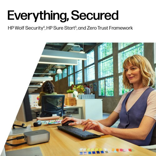 - Prevent potential threats with HP Wolf Security[4], interlacing HP Sure Start[5] and Zero Trust Framework to provide complete end-to-end security. Work and rest easy knowing everything from the dock to the cloud is protected.