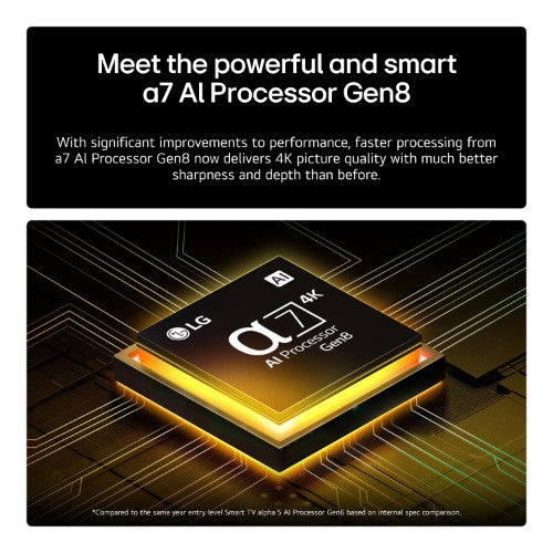 LG NANO80A features webOS, LG's smart platform which hosts a huge variety of the best streaming services, while making browsing and searching for what to watch completely hassle-free. The smart platform is controlled with the LG AI Magic Remote, and opens up a world of information and assistance through a variety of AI-driven services. These include the AI Chatbot - which can help you to change the image or sound to your liking simply by asking, Voice ID – which can recognise different users and provide personalised recommendations, and much more.