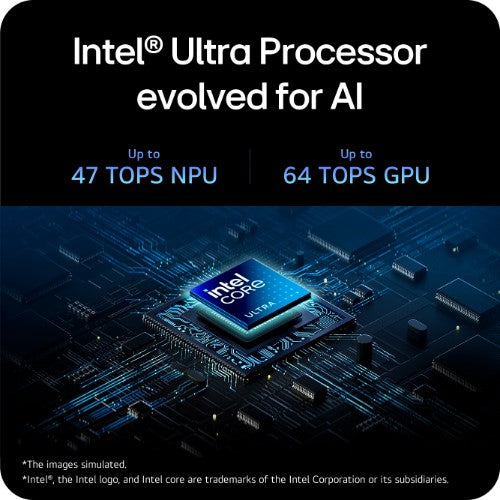 - Powered by Intel Core Ultra 7 256V processor with up to 47TOPS NPU, the LG gram delivers exceptional performance for professional-grade graphics work and video editing.