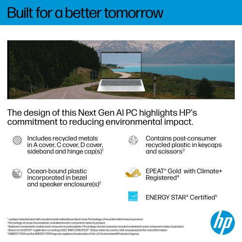 The HP OmniBook 7 Aero 13.3" NGAI PC is designed using recycled metals[6] and ocean-bound plastics[7].Description