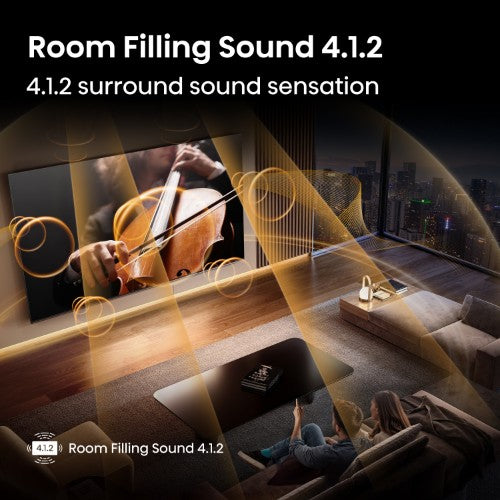Our U8Q's audio is built to deliver truly immersive cinematic sound. We'll take you to the heart of the action with a 4.1.2 channel configuration and powerful subwoofers designed to pack a punch.
