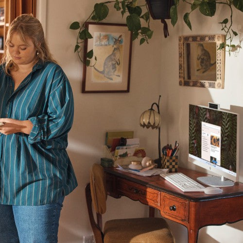 The HP 27" All-in-One Desktop PC empowers you to do more while using less. Responsibly manufactured using post-consumer recycled and ocean-bound plastics[1]. With a powerful processor, upgraded memory and enhanced multitasking features, there’s no compromise for heightened performance.